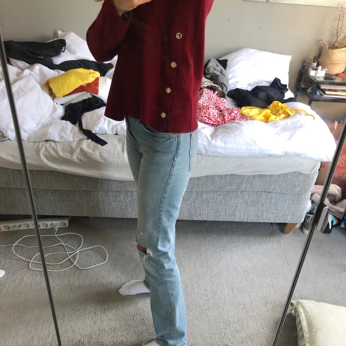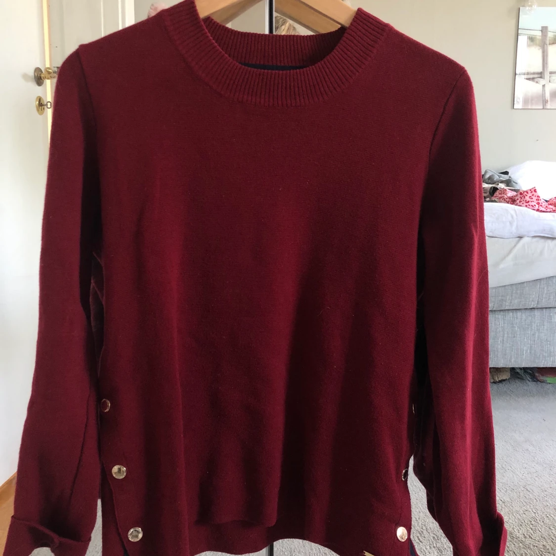 Mycket skön stickad tröja från Lindex i storlek S. På kanterna har den en snygg detalj med guldiga knappar som går att knäppa upp. Mycket bra skick och inga fläckar eller liknande. Använd 3-4 gånger. Skriv vid intresse!