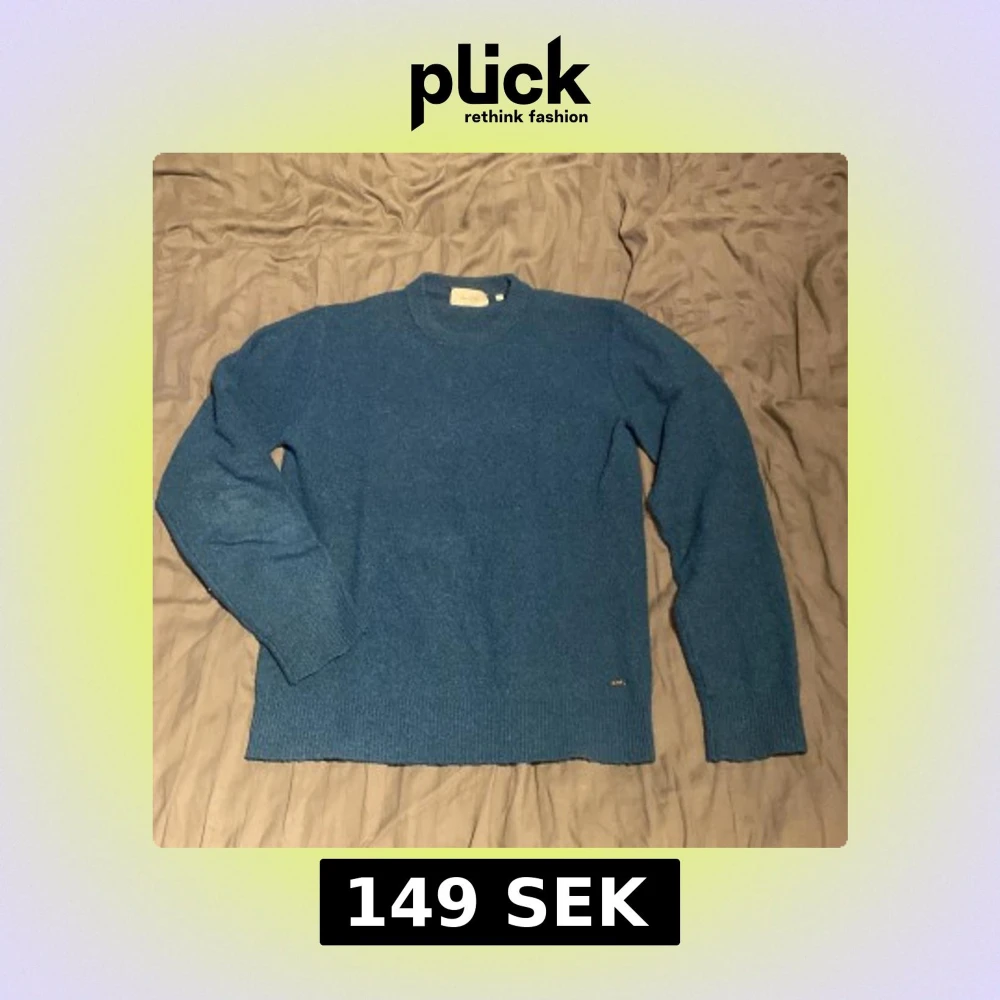 Blå van gils tröja med snygg struktur. Rundhalsad. Skriv vid frågor
