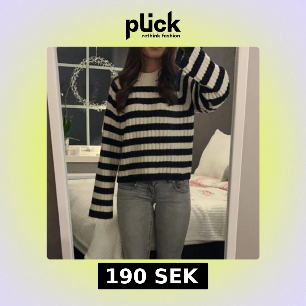 Säljer en mysig randig stickad tröja i svart och vit. Tröjan har långa ärmar och en avslappnad passform, perfekt för kyliga dagar. Den är både stilren och bekväm, ett måste i garderoben! Kan vara lite sticksig men går fint när man ha ett linne under💗💗