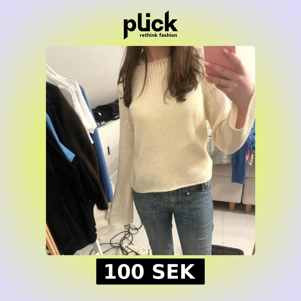 Söt vit/krämvit tunn-stickad tröja!❤️🤍🤍
