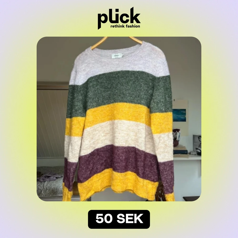 En tunn, randig stickad tröja som passar perfekt nu till hösten och vintern. Den är stl L men passar även en M och S.