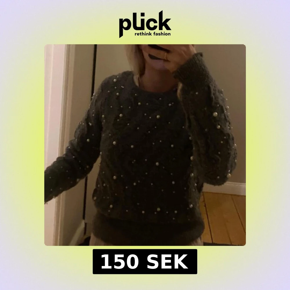 Snygg grå tröja från Zara dekorerad med pärlor över hela. Knappt använd!