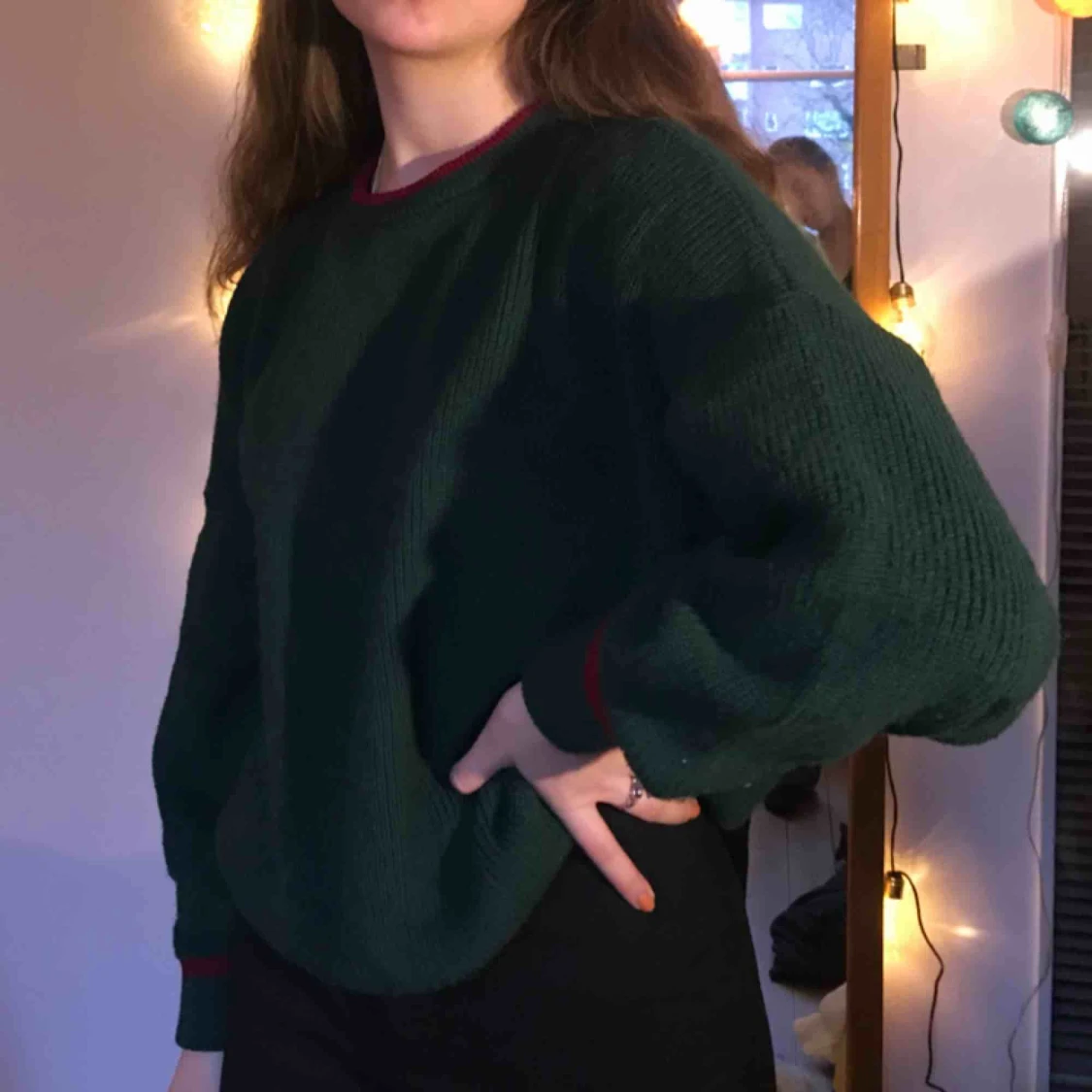 En mysig over-sized mörkgrön tröja med rosaröda detaljer💚 eventuell frakt står köparen för men möts annars upp på söder☀️