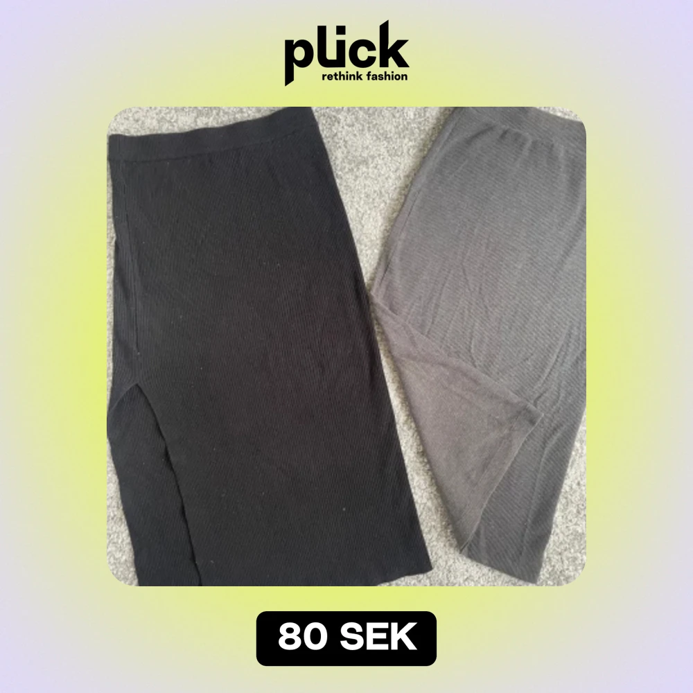 En svart stickad långkjol med en slitts på ena sidan, och en grå lång kjol. Båda är i bra skick och båda är xs 💞