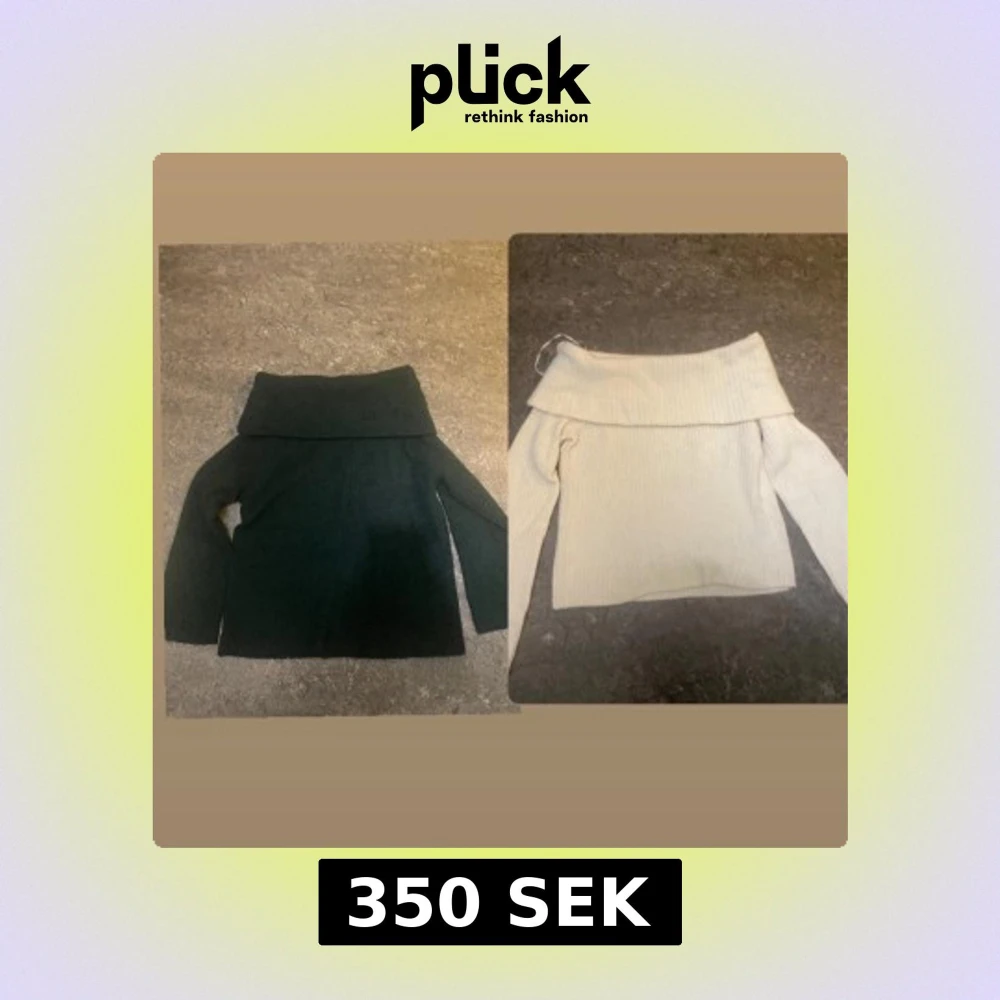 KÖP 2 FÖR OCH SPARA PENGAR(frakt) Säljer två snygga stickade offshoulder-tröjor, en i mörkgrönt och en i krämvitt. Båda har bred krage som viks ner över axlarna och är ribbstickade med lång ärm. Perfekta för dig som vill ha en trendig och mysig look under kyligare dagar.