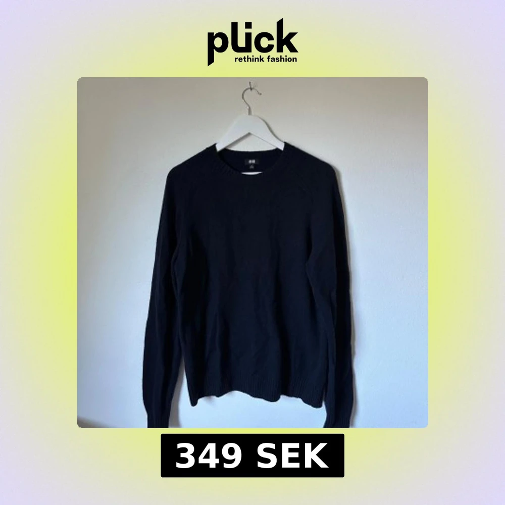 Klassisk mörkblå stickad tröja från Uniqlo i 100% ull. Tröjan har rund halsringning, ribbade muddar och lång ärm. Perfekt för lager-på-lager och enkel att matcha med jeans eller kjol. 3S15