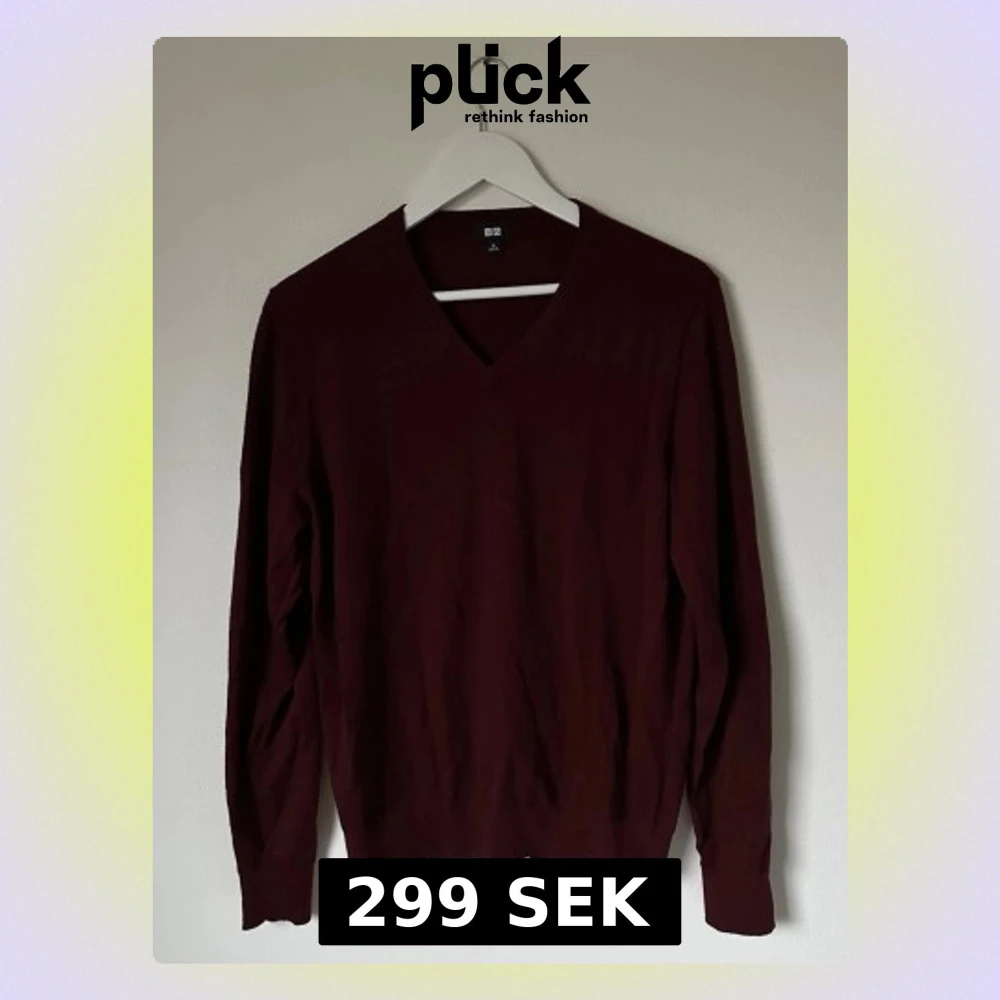 Snygg vinröd v-ringad tröja från Uniqlo i 100% ull. Tröjan har lång ärm och klassisk passform, perfekt för lager-på-lager under kyliga dagar. Enkel design utan mönster eller detaljer, vilket gör den lätt att matcha med olika stilar. 5L13