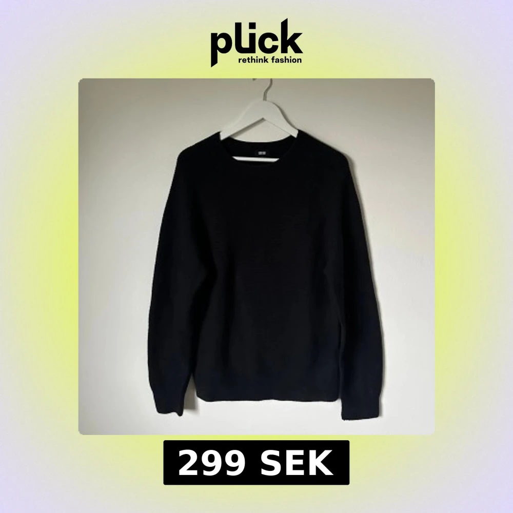 Svart stickad tröja från Uniqlo i storlek S. Tröjan har rund hals och är tillverkad i en mjuk blandning av bomull och akryl. Den har en clean och enkel look med långärmade ärmar och normal passform, perfekt för att hålla dig varm under kyliga dagar. 5I4