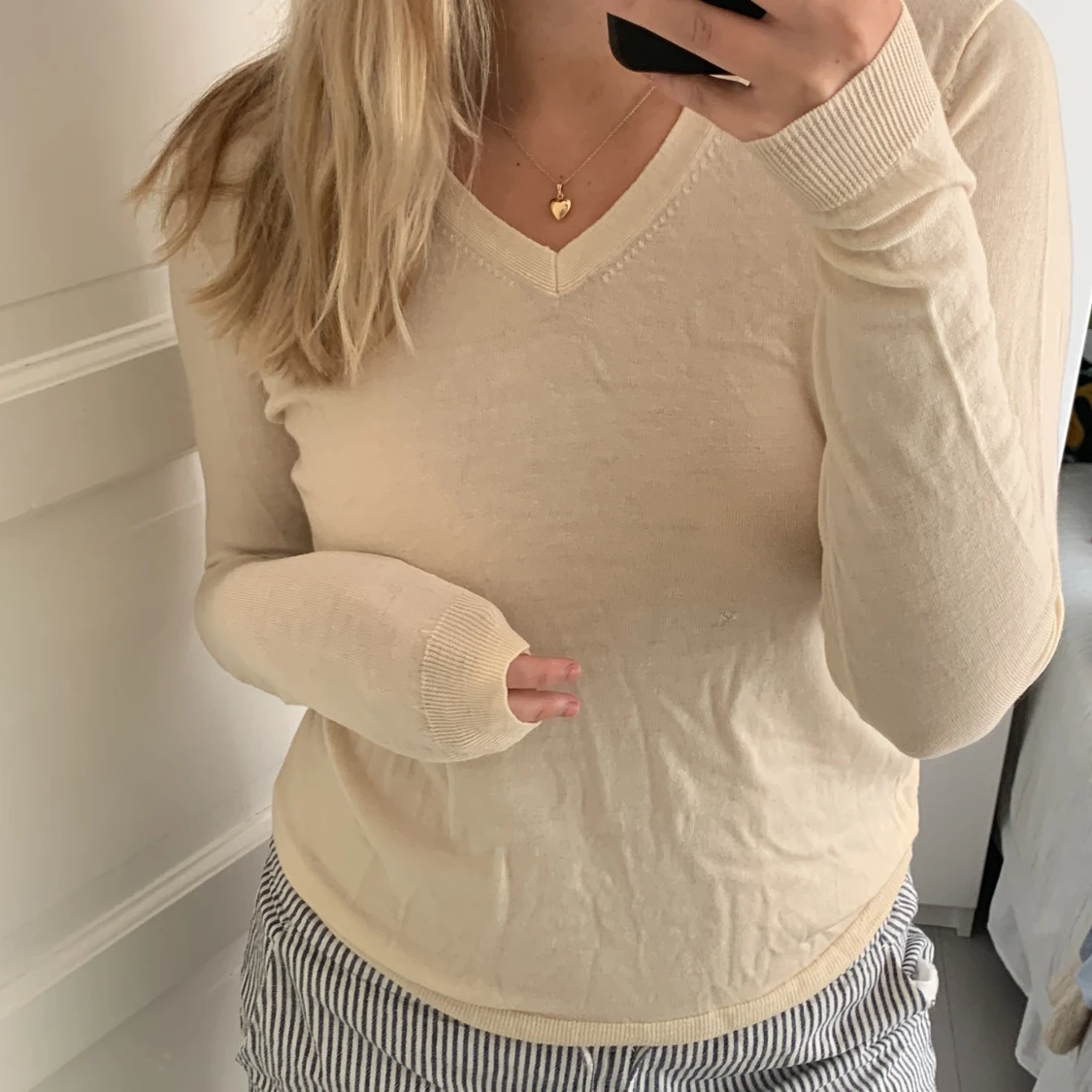 Så fin stickad tröja 😇Storlek L men mer som en S/M💗 Har ett litet litet hål på ena sidan därav priset❤️