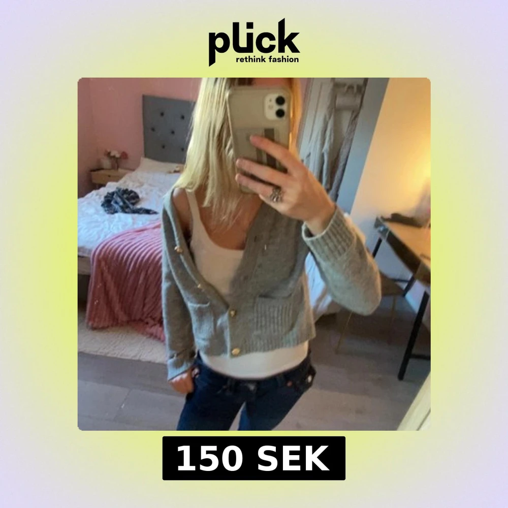 Säljer en mysig grå stickad kofta med fina knappar. Koftan har en v-ringad design och ribbade detaljer vid ärmslut och nederkant. Perfekt nu till vår💞 Strl S men skulle säga att den sitter som XS. ☺️
