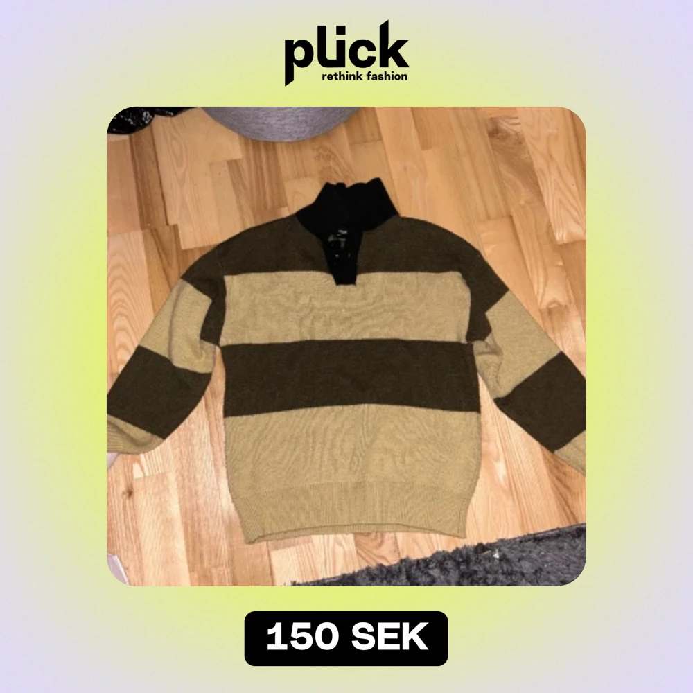 Ej använd Pull&Bear stickad tröja, gul och brun randig, perfekt för våren/hösten