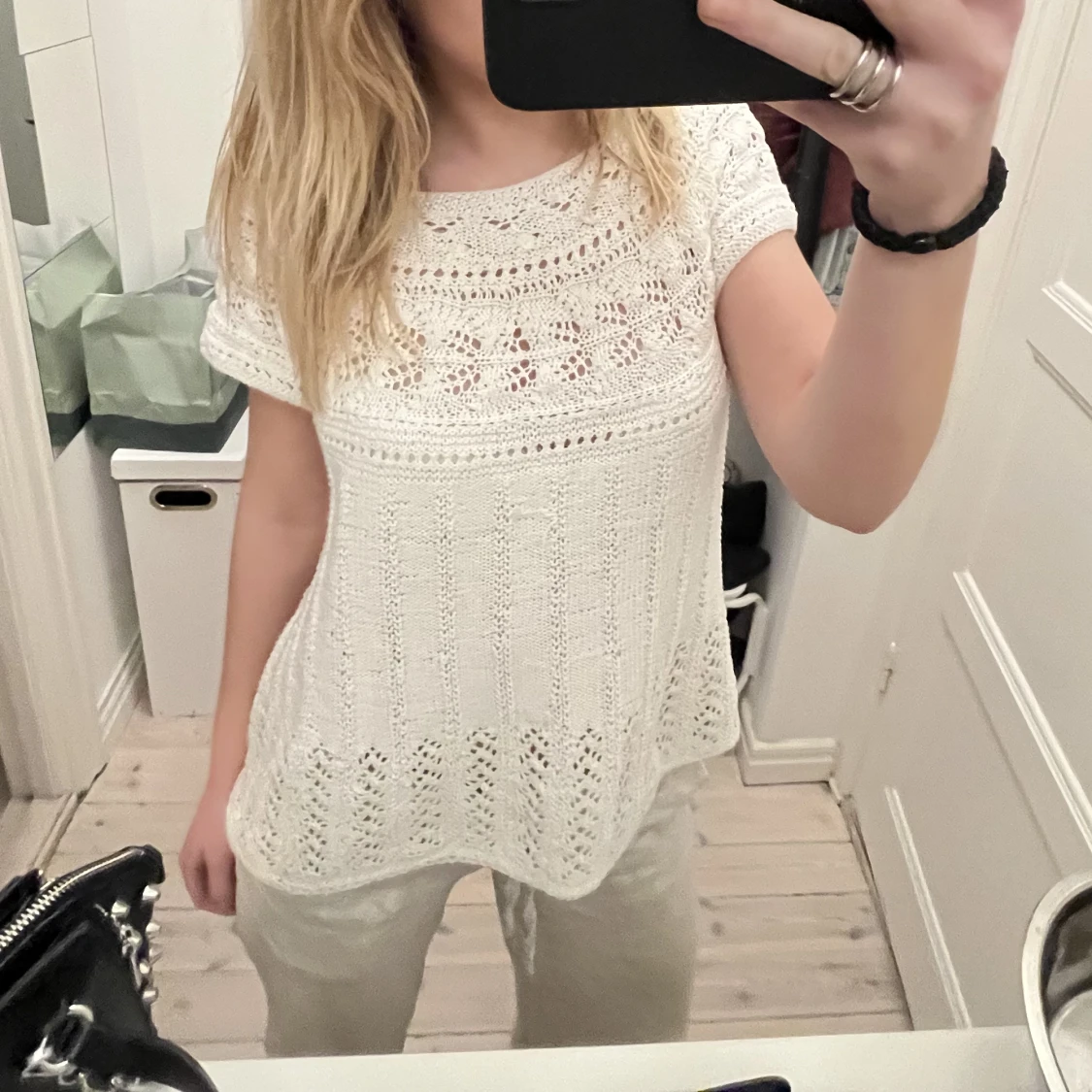 Säljer nu denna vita stickade topp. Köpte second hand och har ingen storlek men skulle säga XS-S. Skriv för flera bilder eller andra frågor💓