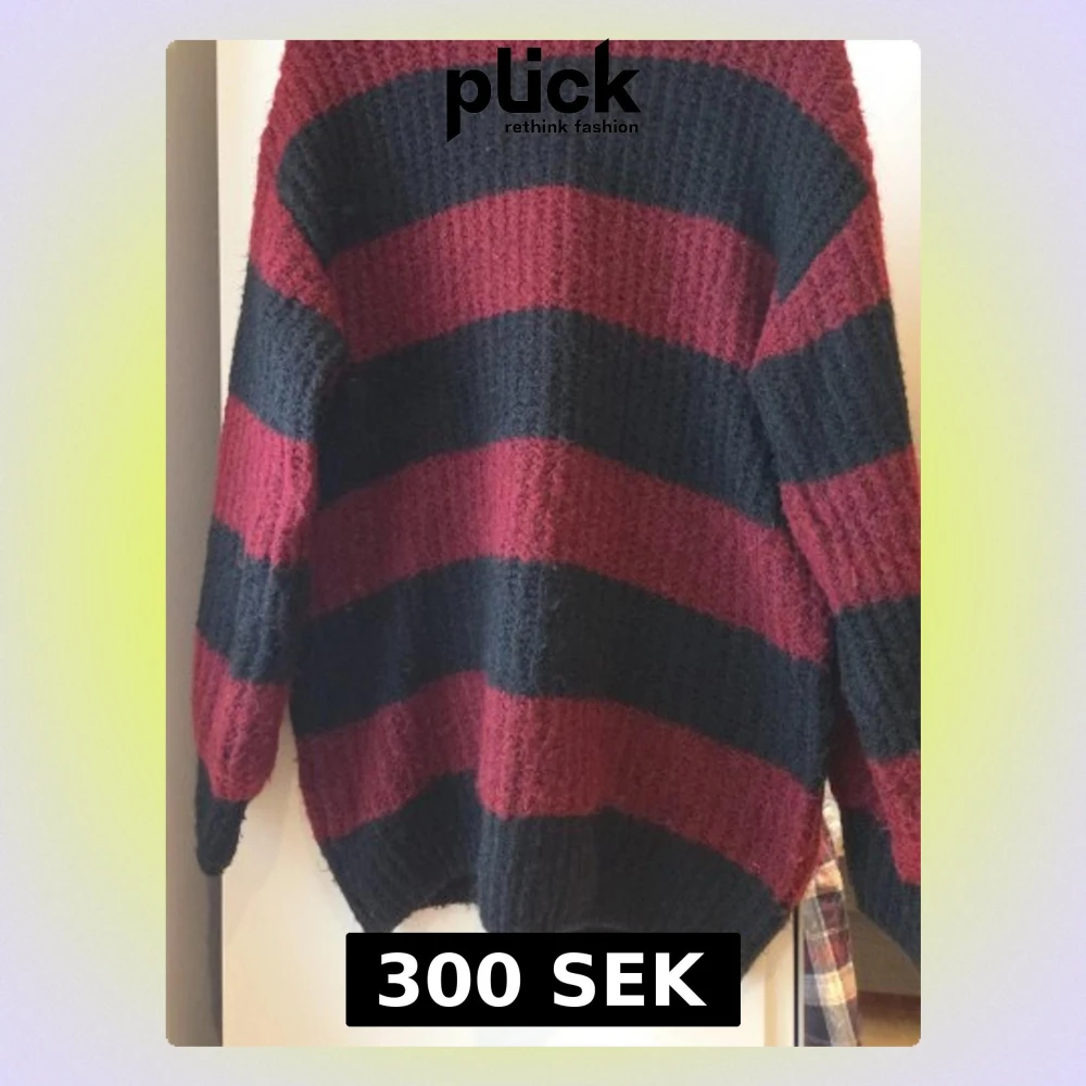 Mysig oversized stickad tröja från H&M Divided i storlek XS. Tröjan har breda svarta och vinröda ränder, lång ärm och rund hals. Perfekt för kalla dagar när du vill ha något både bekvämt och snyggt.