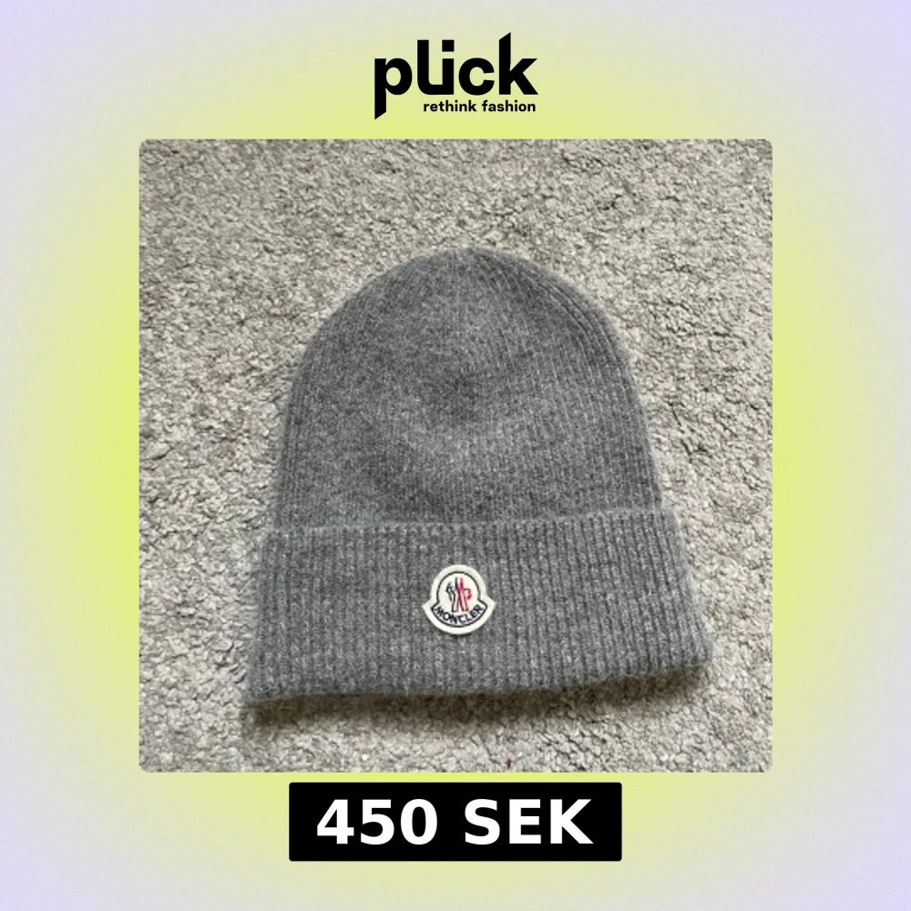 Snygg grå stickad mössa från Moncler med klassisk uppvikt kant och broderad logotyp framtill. Säljer den då den inte kommit till så mycket andvändning, priset är förhandlingsbart!