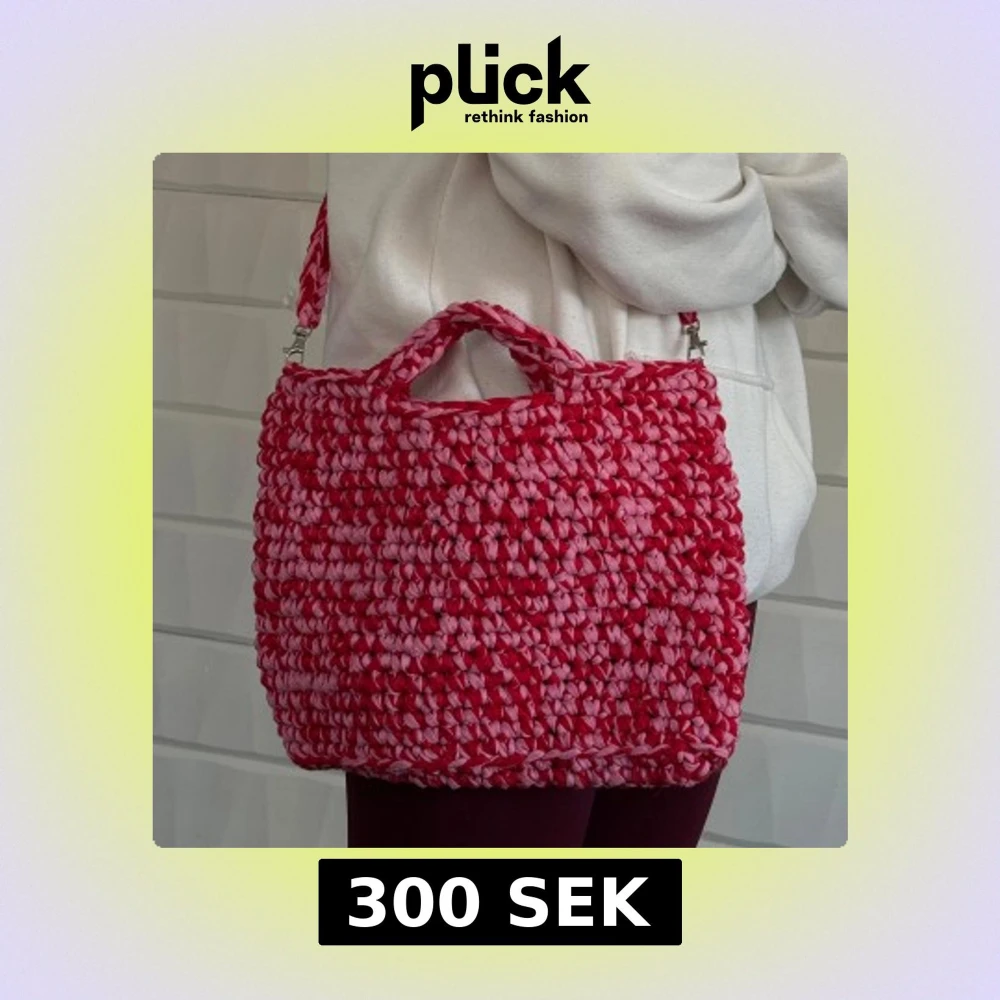 En egenvirkad rosa och röd väska. Den har ett avtagbart axelband och väskan får dessutom plats med en dator! Vid frågor är det bara att skriva ☺️
