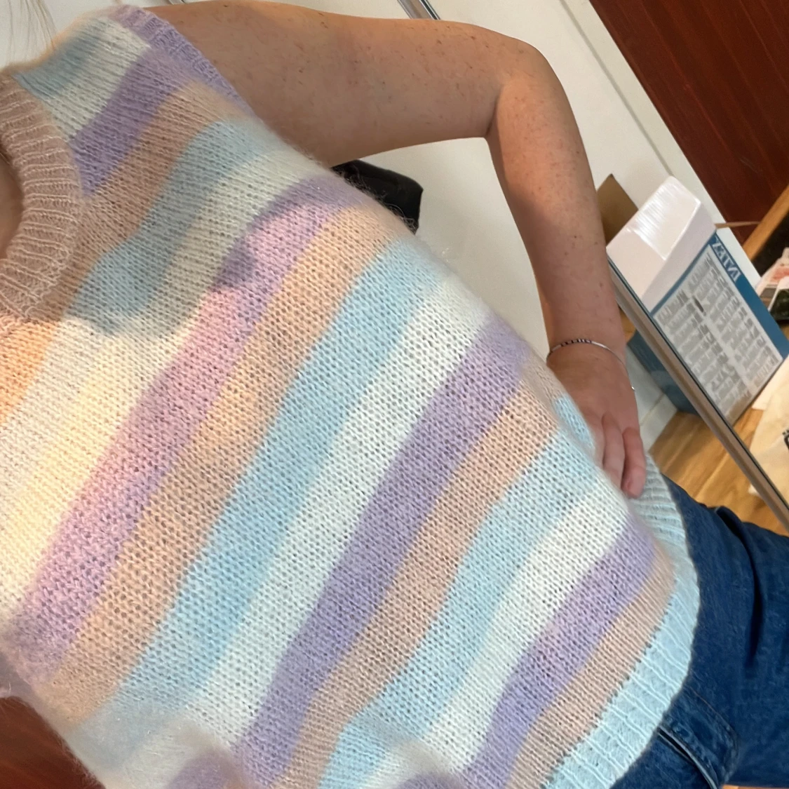Randig stickad väst från Its May, storlek S/M. Knappt använd och i nyskick! 75kr+frakt