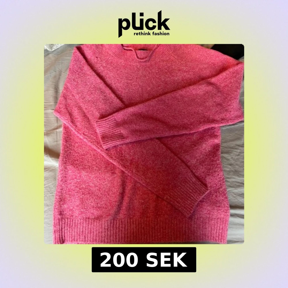 Mysig rosa stickad tröja med rund hals och långa ärmar. Tröjan har ribbade muddar vid ärmslut och nederkant, perfekt för att hålla värmen under kyliga dagar. Enkel och stilren design som passar till många olika outfits.
