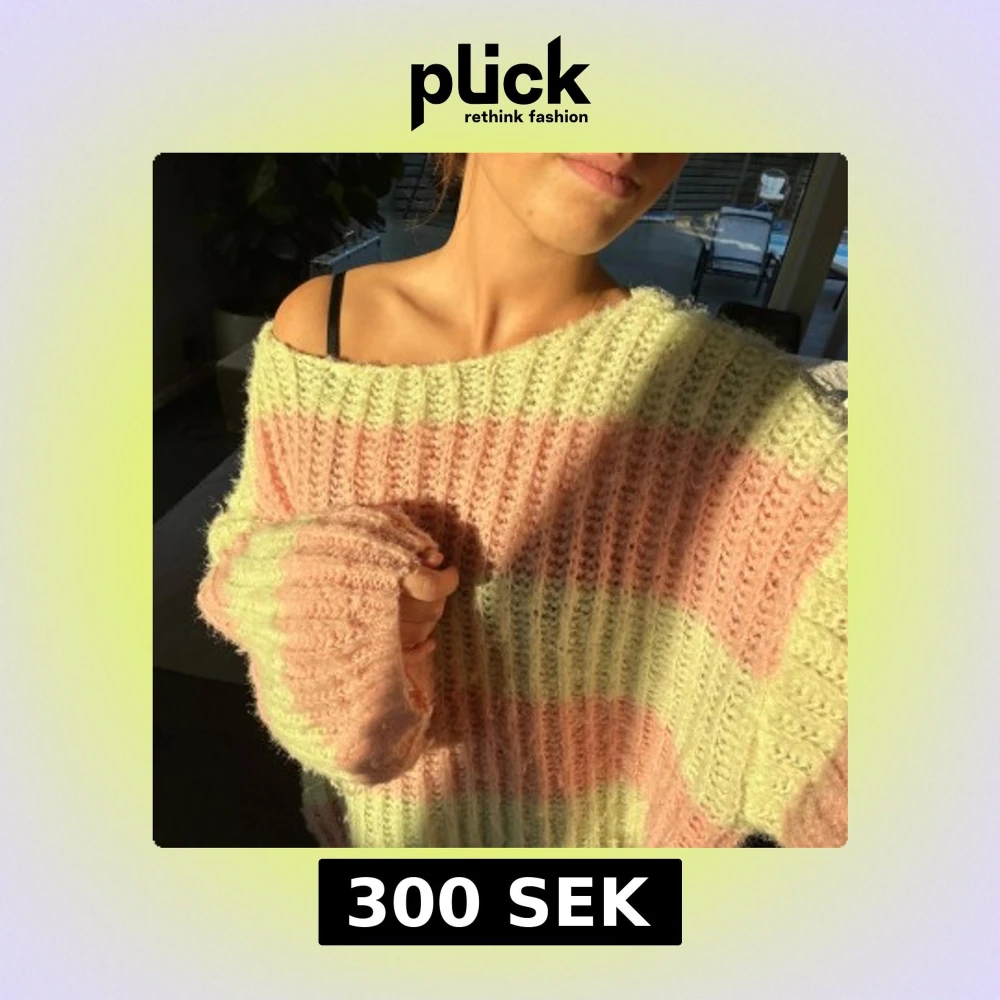 Supermysig oversized stickad tröja med breda pastellrosa och ljusgula ränder från vera moda.