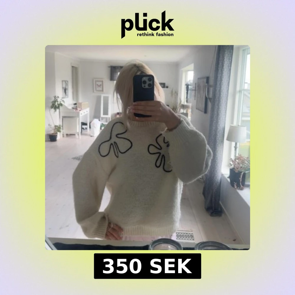 Supermysig vit stickad tröja med svarta broderade blommor framtill. Tröjan är köpt på Veromoda, nypris 500, inte använt så mycket