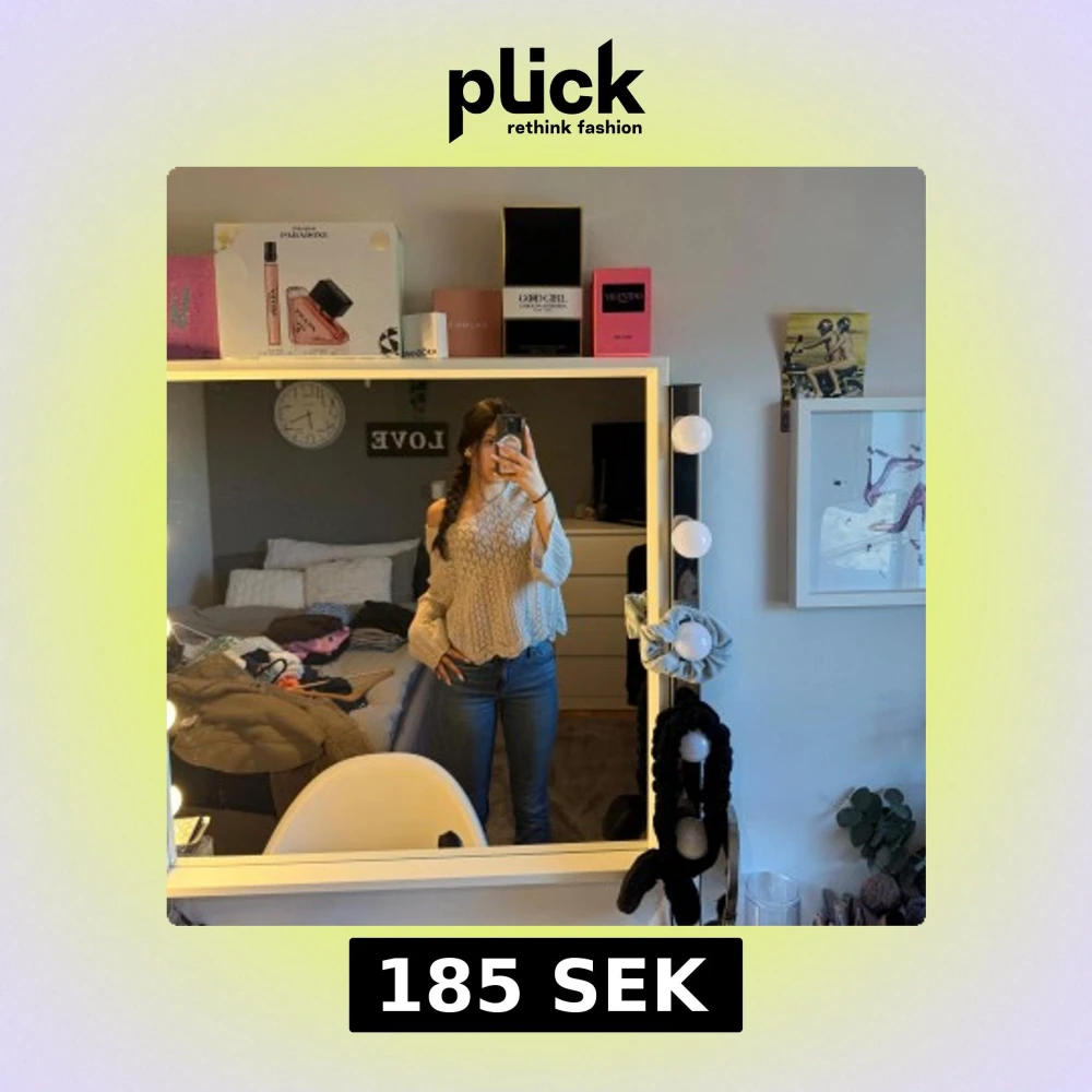 Säljer en mysig beige stickad tröja med offshoulder-design. Tröjan har en lös passform och långa ärmar, perfekt för en avslappnad stil. Passar bra till jeans eller kjol för en trendig look.