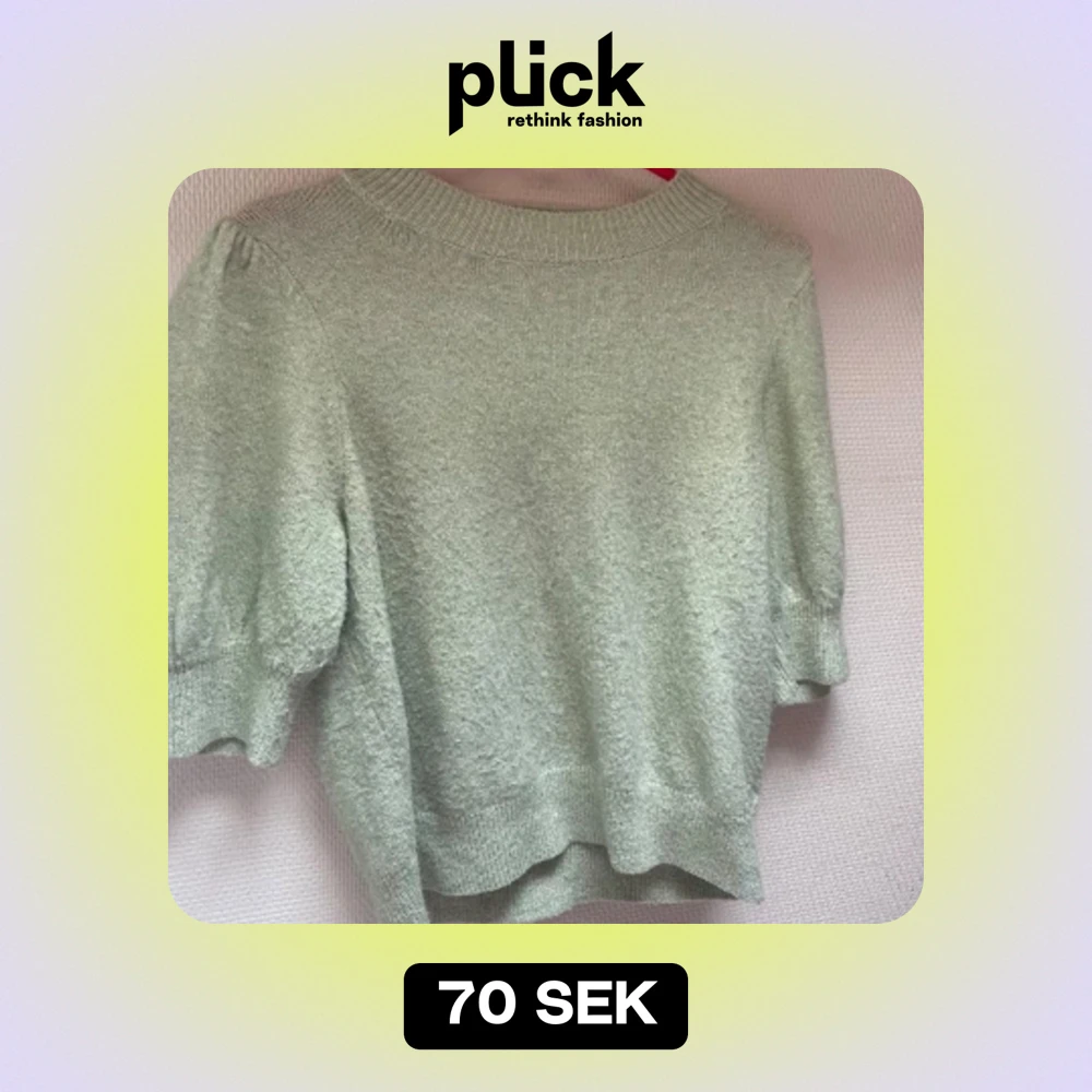 En ljusgrön tröja från Vero Moda med korta ärmar och ribbstickade muddar vid halsen och nederkanten. Tröjan har en mjuk och bekväm textur.