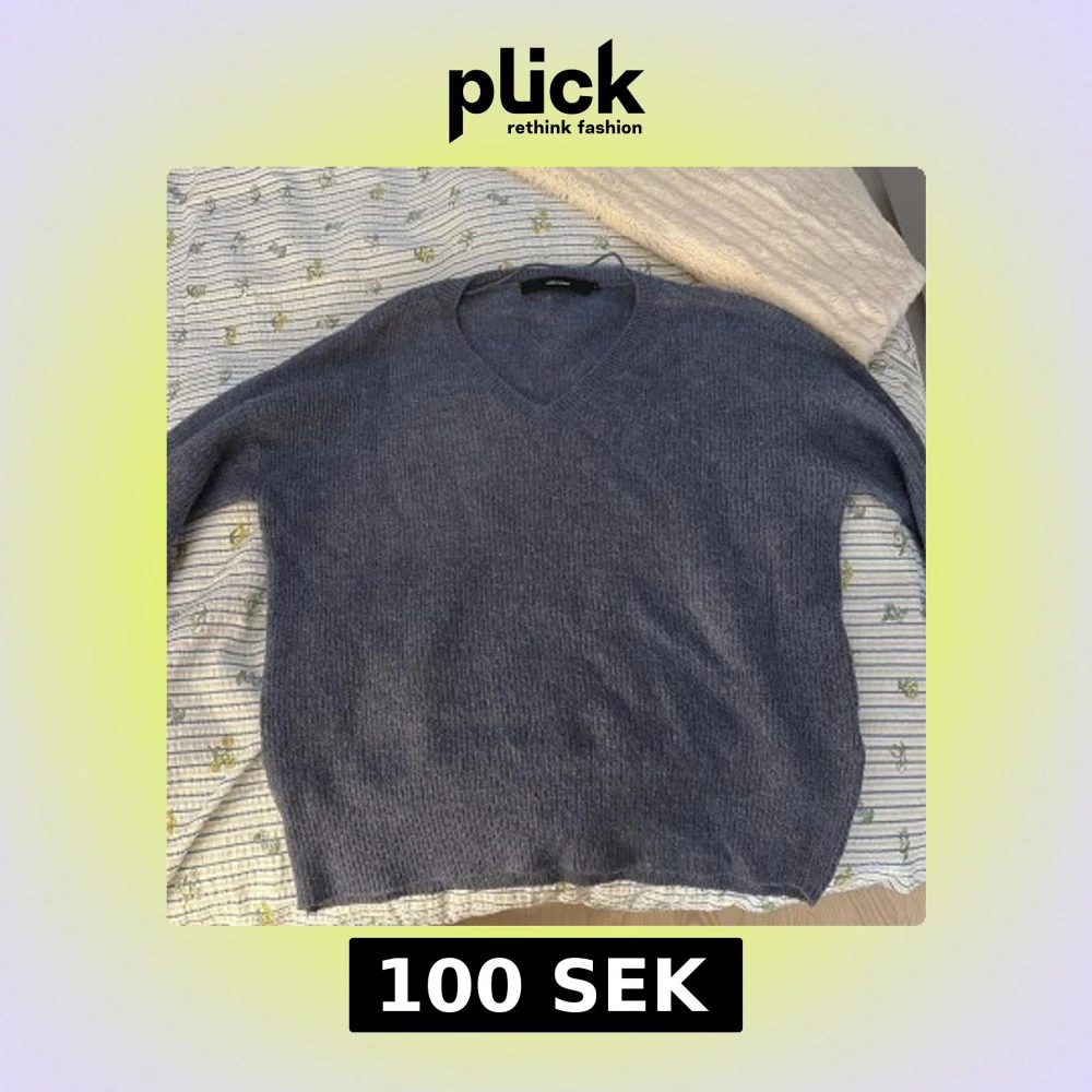 Säljer en mysig blå stickad tröja från Vero Moda. Tröjan har en v-ringad hals och långa ärmar. Den är enkel och stilren, de är därför jag älskar den. Den har dock inte kommit till användning på senaste ☺️
