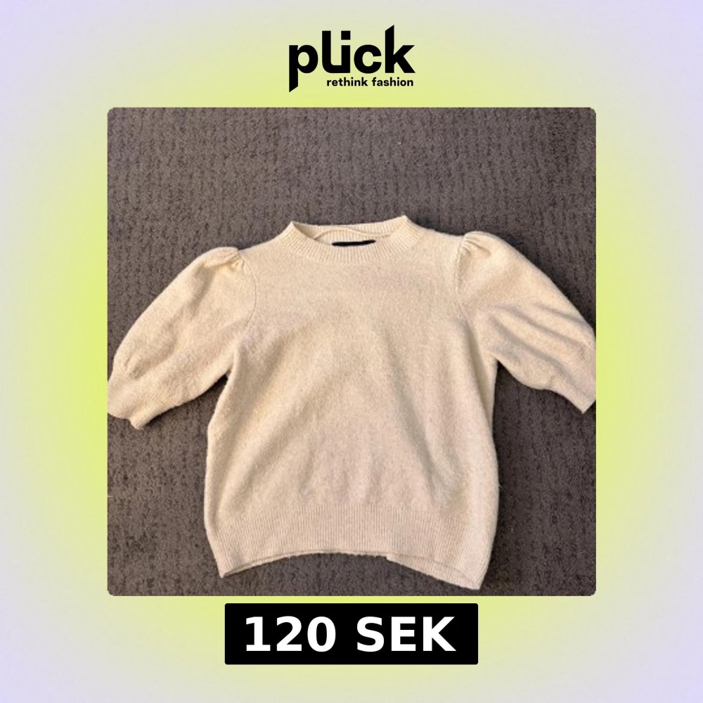 Superfin beige stickad tröja från Vero Moda med puffiga korta ärmar och ribbade muddar. Säljer då den tyvärr inte kommer till användning längre
