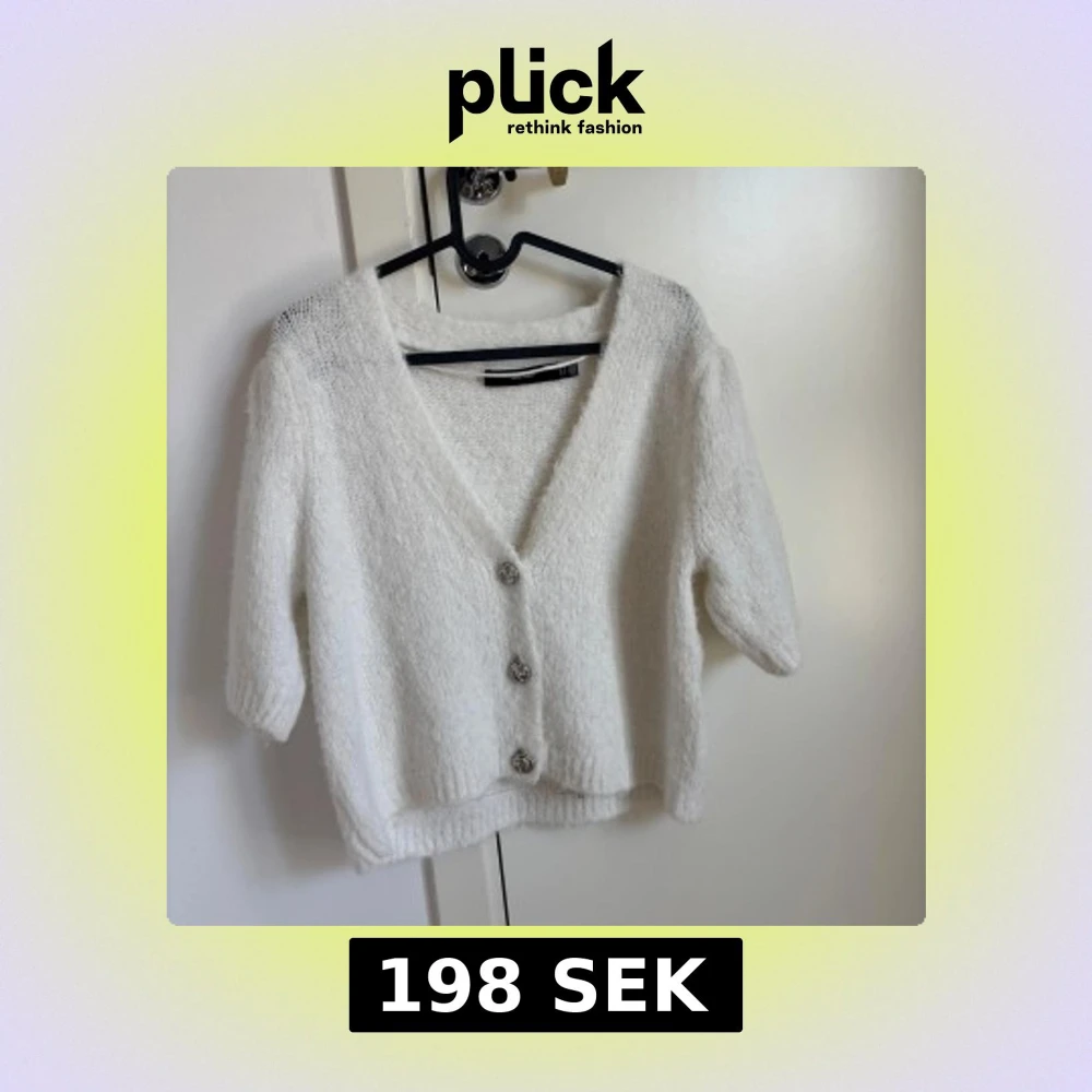 Supermjuk och fluffig vit kofta från vero Moda med tre snygga knappar framtill. Koftan har v-ringning, korta ärmar och en croppad passform som ger en chill vibe. Perfekt att slänga över ett linne eller t-shirt för en enkel men stilren look.