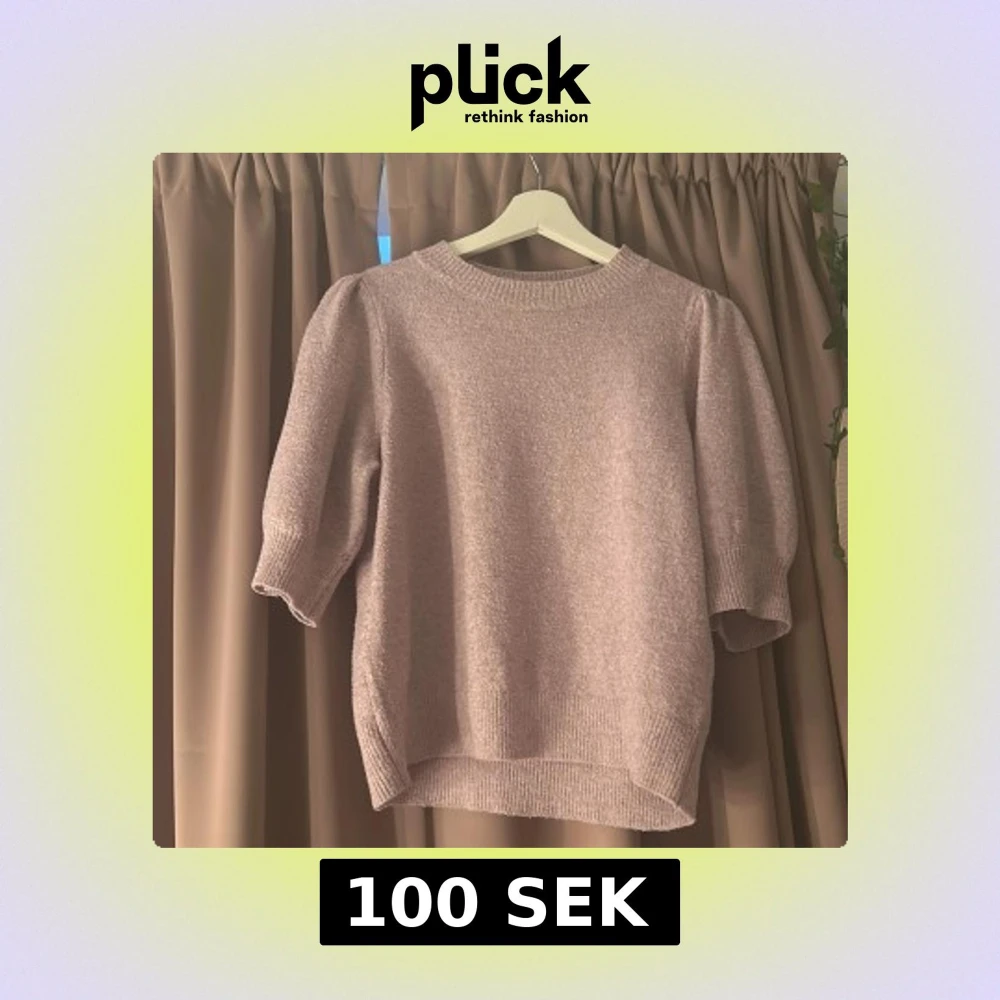 Superfin ljuslila stickad tröja med puffiga, halvlånga ärmar och ribbade muddar. Tröjan har en rund halsringning och är lite längre bak än fram, vilket ger en snygg siluett. Perfekt för dig som gillar en söt och trendig look!💗