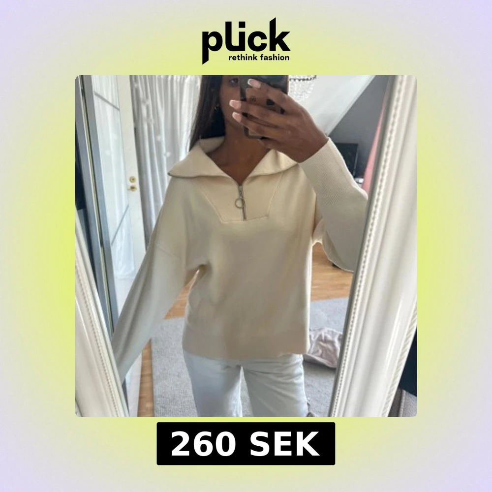 Superfin beige stickad tröja från Vero Moda med halv dragkedja och krage. Tröjan har lång ärm, relaxed fit och slits i sidorna. Snygg och enkel och passar till jeans eller kjol. Storlek M men passar mig som vanligtvis har S, aldirg använd!