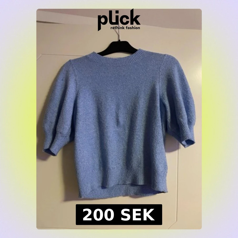 Supersöt ljusblå stickad tröja från Vero Moda i storlek XS. Tröjan har puffiga trekvartsärmar och ribbade muddar vid hals, ärmslut och nederkant. Perfekt för dig som vill ha en chill men ändå stylish look till vardags.
