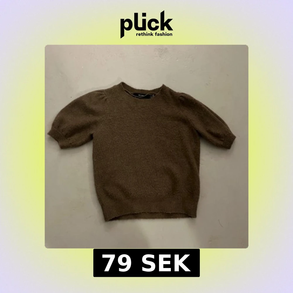 Mysig brun stickad tröja från Vero Moda med kortare puffärmar och rund halsringning. Använd en del och är därmed nopprig!! Skriv för fler bilder eller detaljer😇💓