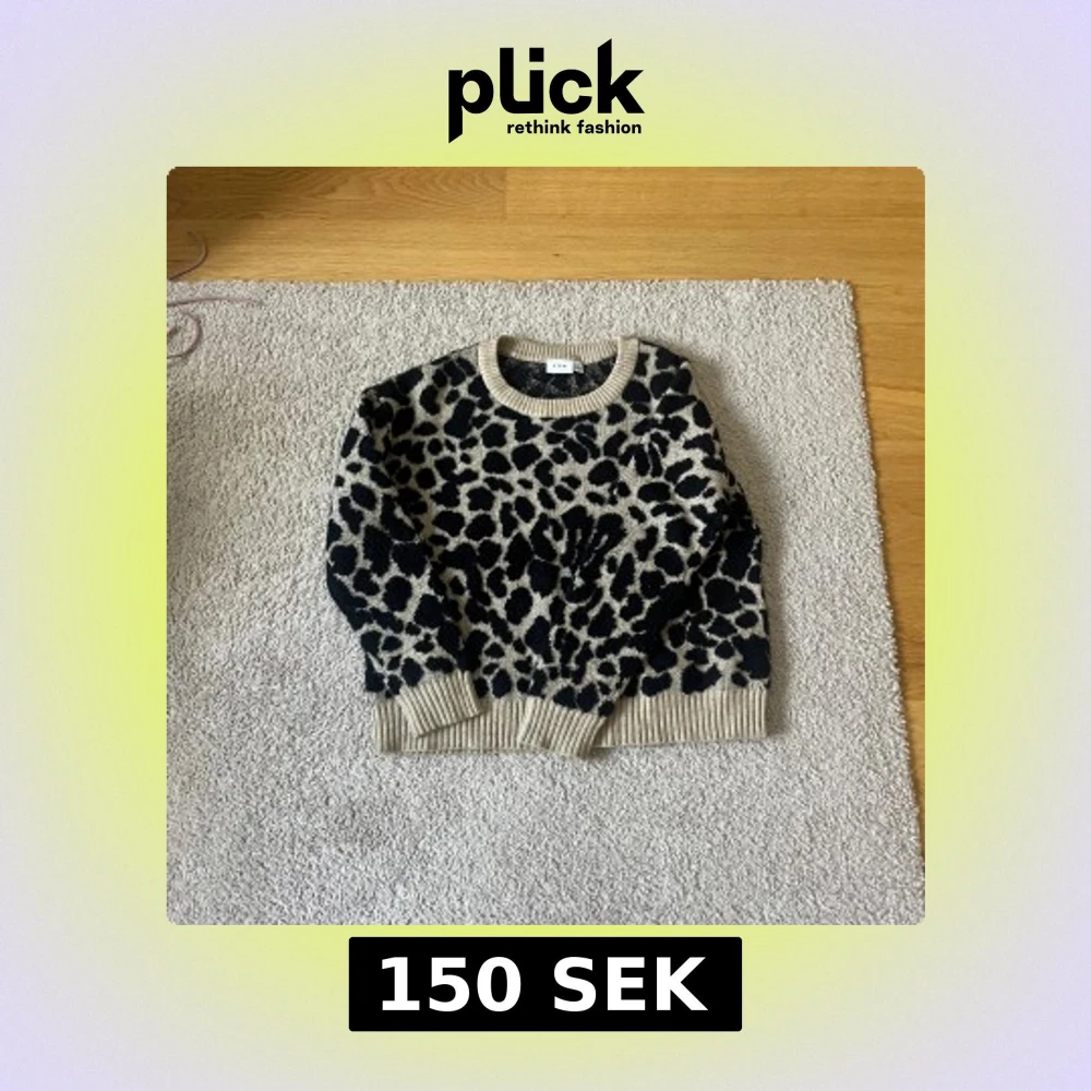 Säljer en stickad tröja från VILA i beige med svart leopardmönster. Tröjan har rund halsringning, ribbade muddar och är långärmad. Perfekt för dig som vill ha en trendig och mysig look.