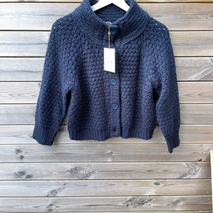 En oanvänd marinblå stickad cardigan i XL, känns mer som en S-M