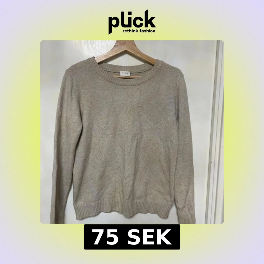 En enkel och snygg beige stickad tröja från VILA i storlek S. Tröjan har rund hals, ribbade muddar vid ärmslut och nederkant samt långärmad passform. Perfekt för dig som gillar neutrala färger och mjuka material.