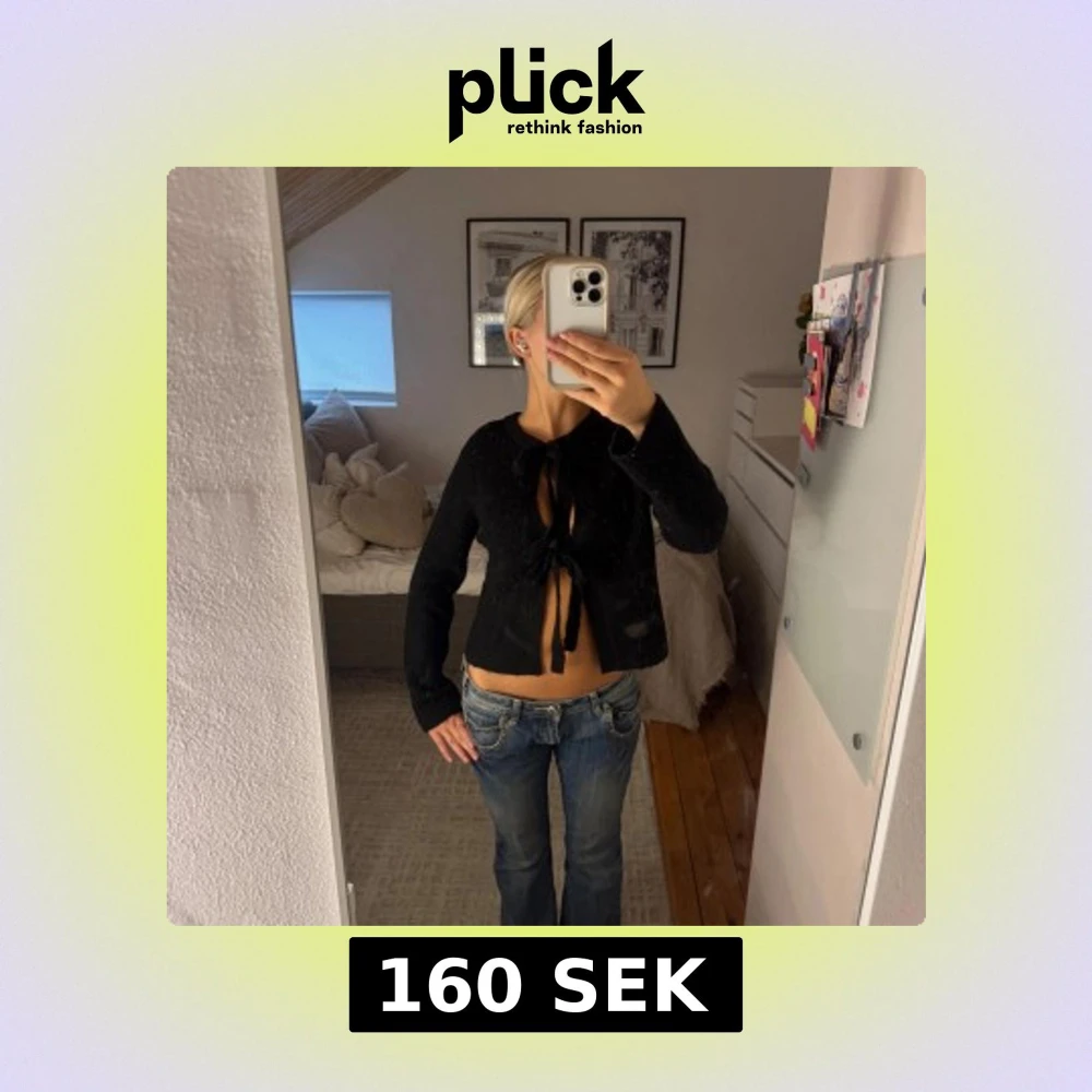 Svart stickad tröja. Toppen har snygga knytband som du kan ha både fram och bak som ger en öppen look. Perfekt för dig som gillar trendiga detaljer och vill sticka ut lite extra.