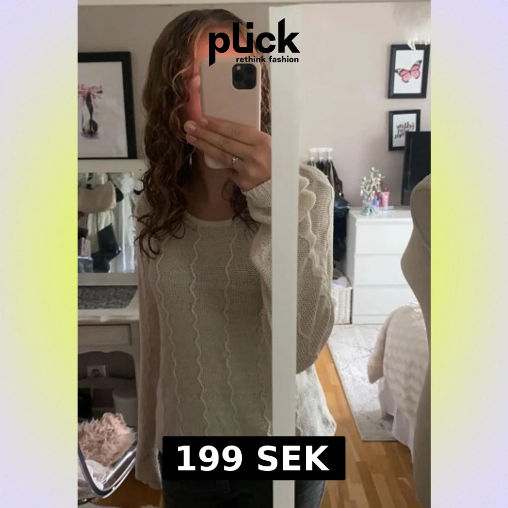 Beige stickad tröja med vågigt mönster, från vila