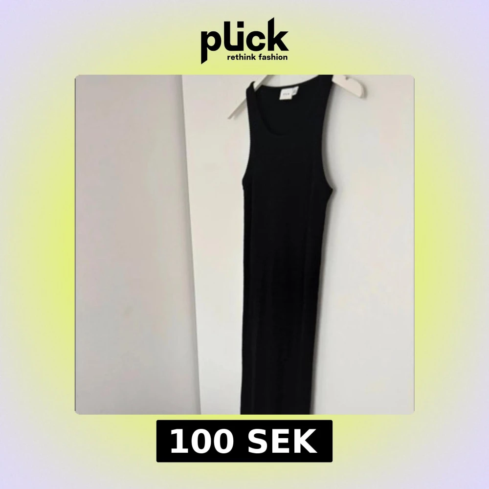 Säljer en svart lång stickad klänning från Vila. Klänningen är ärmlös med rund halsringning och har en tight passform. Perfekt för dig som gillar en enkel och stilren look med lite edge.