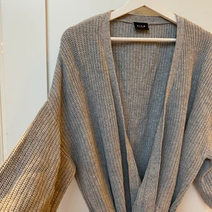 in stickad kimono med knytning i midjan från Vila. Nyskick. Mjukt och strechigt garn. Funkar i stl M/L Kan mötas upp eller skicka på posten(köpare betalar frakten). Samfraktar gärna om du köper flera plagg!
