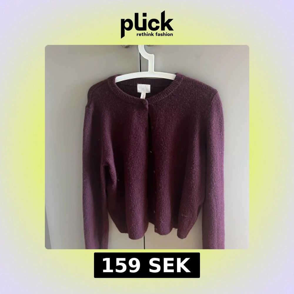 Säljer en mysig vinröd kofta från H&M. Den har långa ärmar och knäppning framtill. Perfekt för kyliga dagar och enkel att matcha med olika outfits.