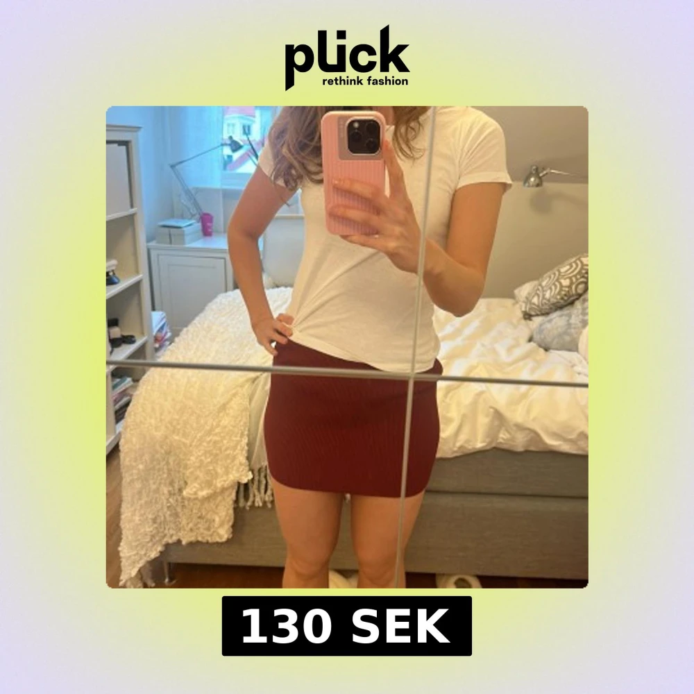 Säljer en vinröd ribbad minikjol från Zara. Kjolen är tight och har en enkel, stilren design utan synliga detaljer. Perfekt att matcha med en t-shirt eller stickad tröja.