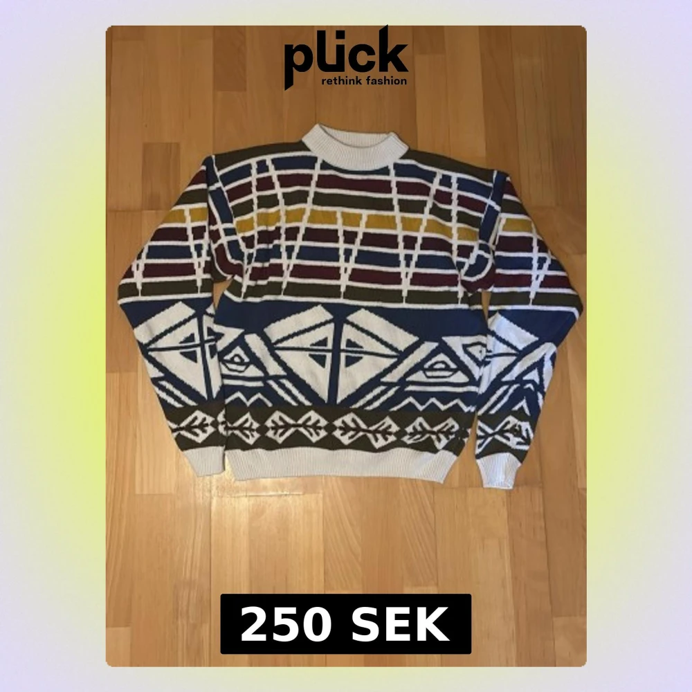 Färgglad stickad tröja med grafiskt mönster