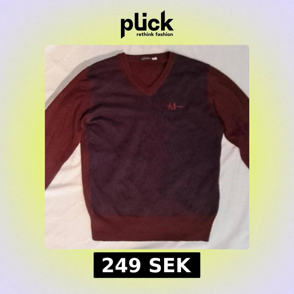 Säljer en stickad tröja från Armani Jeans. Tröjan har v-ringning och broderad AJ-logga på bröstet. Bra kondition använd en gång eller två, storlek medium.
