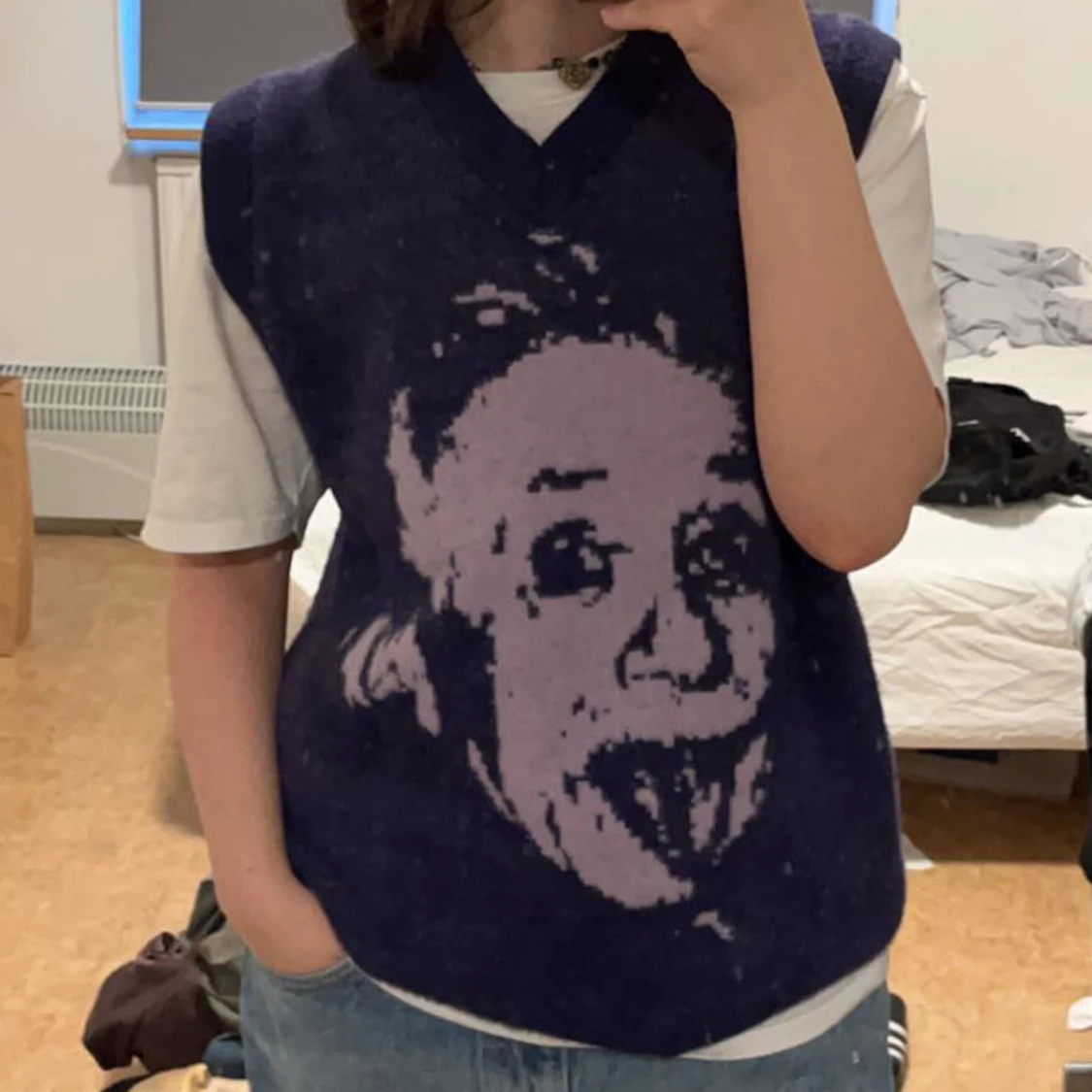 Lila fuzzy stickad väst med design. Inte använd mer än 5 gånger och är i mycket bra skick.