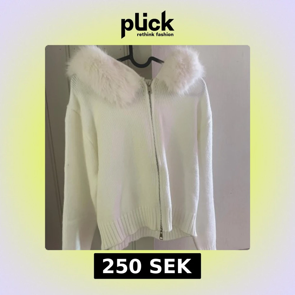 Mysig vit hoodie med fluffig fuskpäls runt huvan och hel dragkedja framtill. Stickad känsla med ribbade muddar vid ärmslut och nederkant. Perfekt för dig som gillar en soft och stylish look under kyliga dagar.