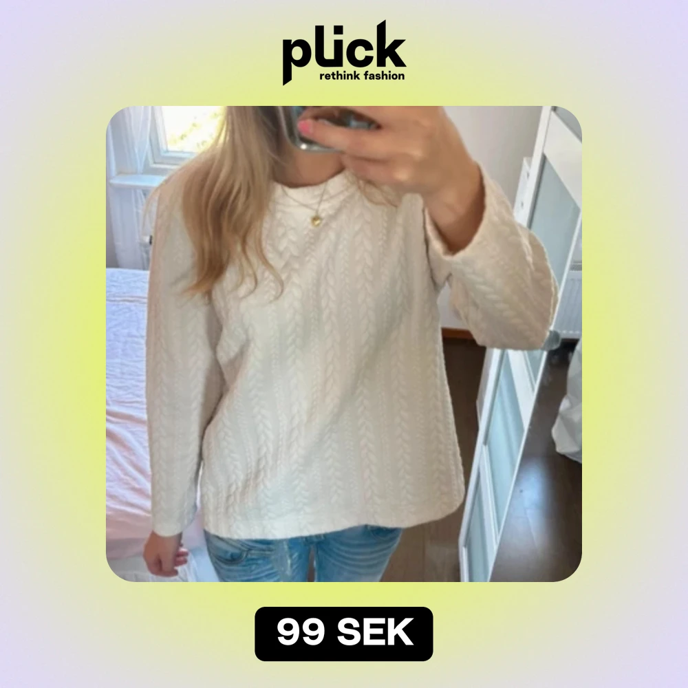 Säljer en superfin vit tröja med ett snyggt flätmönster. Den är perfekt för kyligare dagar och har långa ärmar. Tröjan är både stilren och bekväm, perfekt för både att ha hemma och andra tillfällen. Den är hel och fin, knappast använd! 🤗💗
