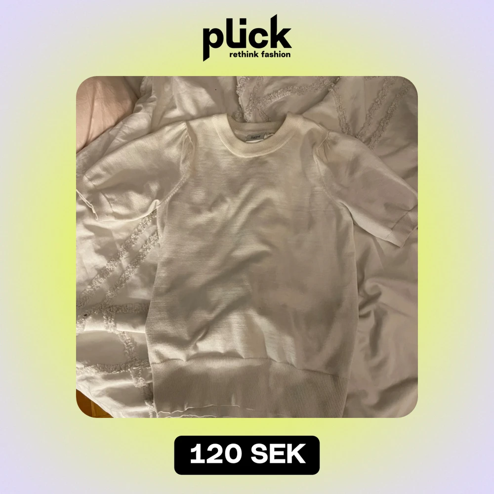 Säljer en superfin vit stickad tröja från saint i mycket bra skick. Den har korta ärmar och en rund halsringning. Perfekt till allt när du vill ha något enkelt men stilrent. Passar till både jeans och kjol!