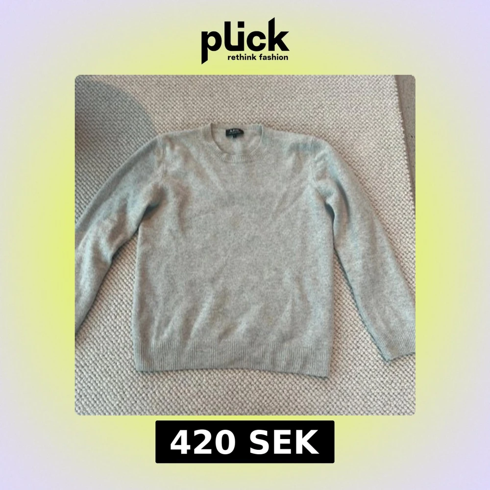 Snygg ljusgrå tröja från A.P.C. 100% merinoull Rund halsringning och ribbade muddar vid ärmslut och nederkant. På lappen i nacken står det storlek:L men den är i storlek:XS då den har krympt o tvätten. Tröjan är flitigt använd men har inga skador eller liknande.