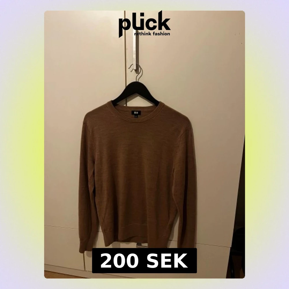 Säljer en stilren beige tröja från Uniqlo i mjuk merinoull. Tröjan har rund halsringning, ribbade muddar och lång ärm. Perfekt för lager-på-lager och funkar året runt. Enkel och clean design som passar till allt. Vid snabb affär kan jag sänka priset lite!