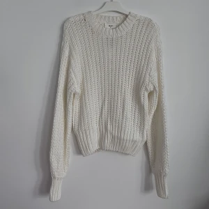 Beige stickad hoodie - Mysig beige stickad hoodie med breda ribbade muddar vid ärmslut och nederkant. Tröjan har en stor huva och är långärmad med loose passform. Perfekt för chill dagar och när du vill ha det extra bekvämt. Aldrig använd!
